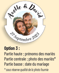 Les dragées, c’est bon , mais cela ne dure pas ! Offrir un bouchon de vin personnalisé au nom des mariés plutôt qu’un ballotin de dragées, voilà enfin de l’originalité.Surprenez vos convives, familles et amis ! Votre bouchon de vin personnalisé est un cadeau moderne qui ravira les invités par son caractère unique.EN COMPLETANT LE FORMULAIRE CI-DESSOUS, VOUS RECEVREZ LA FICHE COMMERCIALE ET LES GRAPHISMES DISPONIBLES .