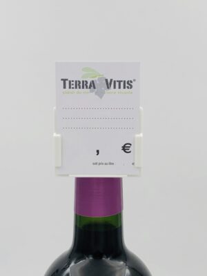 Les affichettes infos/prix CLIPOCOL B7 » Terra Vitis » informent clairement vos clients sur vos bouteilles de vin issues d’exploitations viticoles certifiées en démarche Terra Vitis .