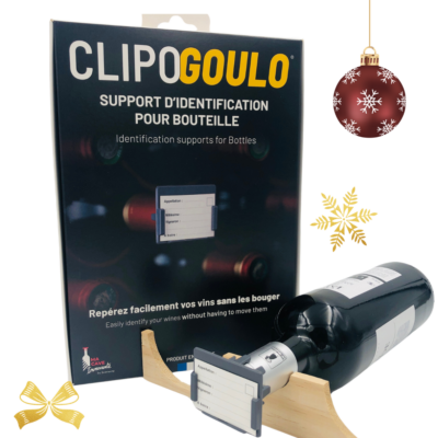 Le CLIPOBACK identifie vos bouteilles stockées en position horizontale par le fond (« cul » de bouteille). il délivre vos infos essentielles en un clin d’œil . Le CLIPOGOULO se clipe facilement en une seconde sur le goulot de chaque bouteille, y compris sur les effervescents. CLIPOBACK et CLIPOGOULO sont fournis avec leurs étiquette d’identification réversibles et imputrescibles.