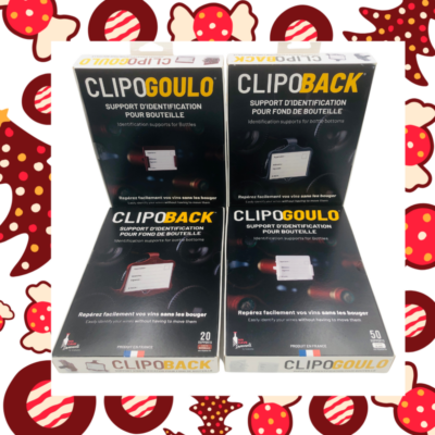 Composition de votre PACK NOËL 7 : 1 Boîte « premium » de 50 CLIPOGOULO Bordeaux, 1 Boîte « premium » de 50 CLIPOGOULO Blanc, 1 Boîte « premium » de 20 CLIPOBACK Bordeaux, 1 Boîte « premium » de 20 CLIPOBACK Gris ardoise + 1 BOUCHON DE VIN OFFERT